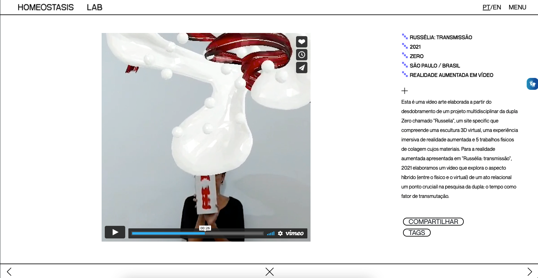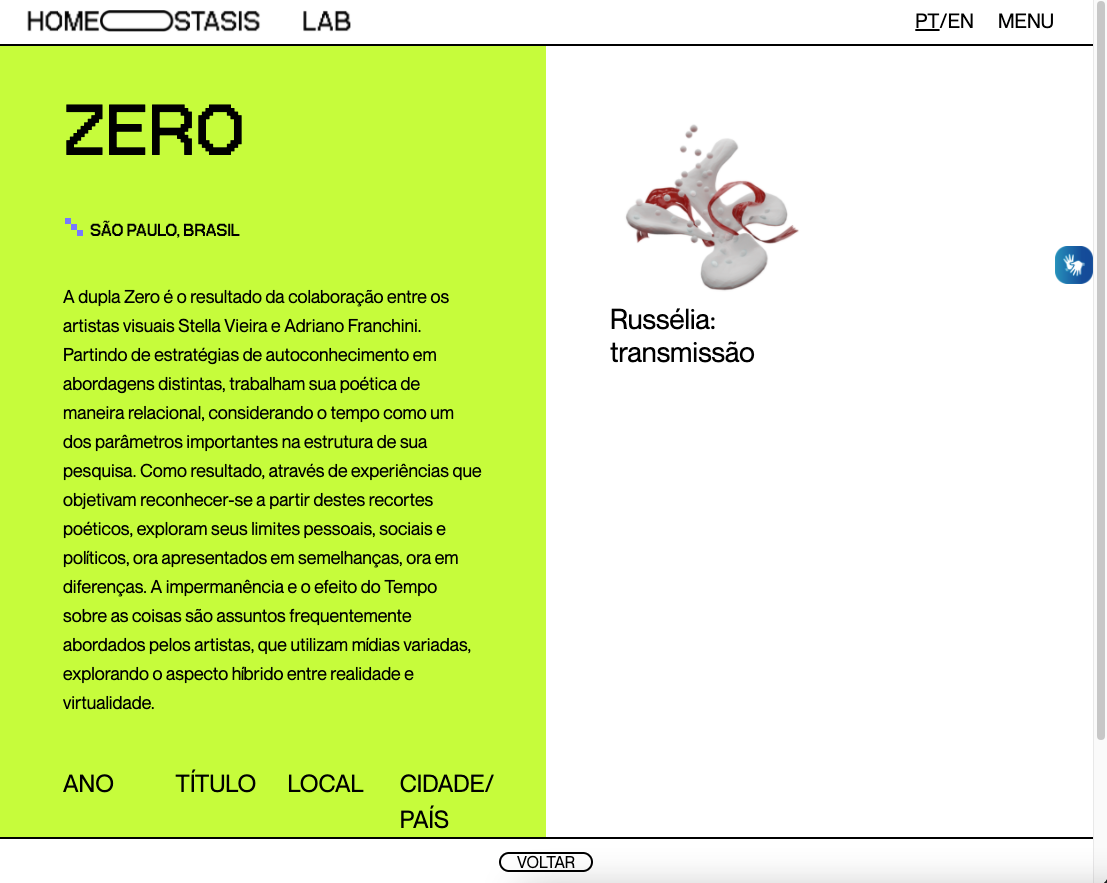 Plataforma digital com acervo permanente a partir de curadorias. Obra "Russélia: Transmissão", dupla ZERO (coletivo com Adriano Franchini)